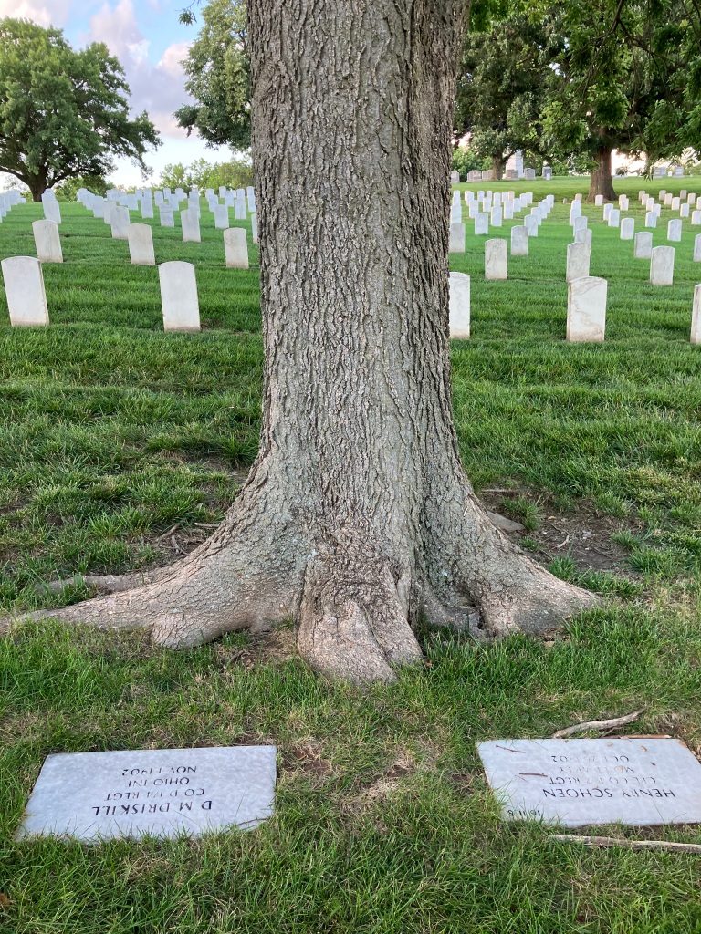 Scattered throughout the rows of upright stones within Ft. Leavenworth National Cemetery, there are a handful of stones lying flat. Found in the shade of an ancient tree, bearing a scar that has forever altered its shape.